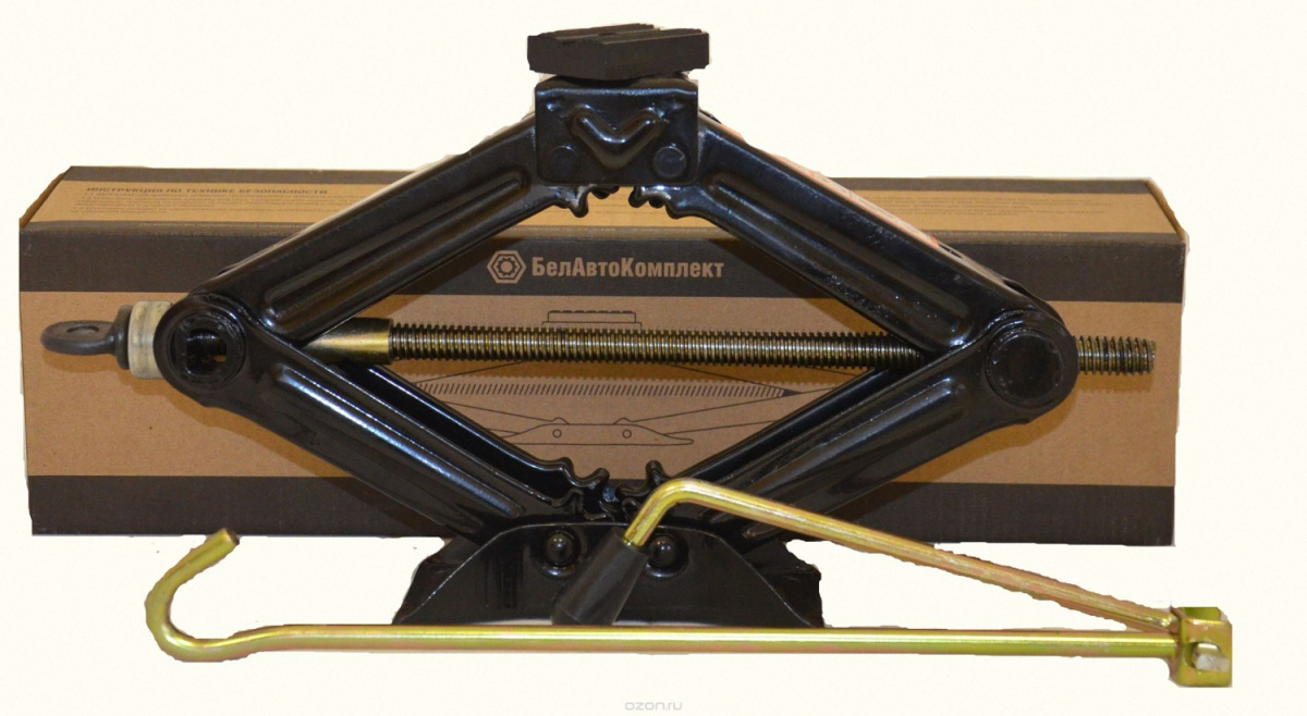 Домкрат автомобильный винтовой ромбический грузоподъёмностью 1,5 тонны (БАК.00058) производства "БелАвтоКомплект" предназначен для подъёма автомобилей полной массой до полутора тонн. Изделие сертифицировано для применения на территории Российской Федерации и прекрасно подходит для замены штатного домкрата большинства легковых автомобилей.