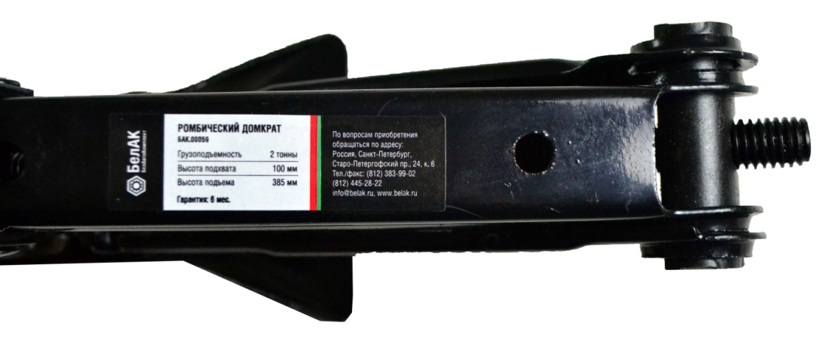 Все домкраты "БелАвтоКомплект" поставляются черного цвета, с логотипом, описанием и в фирменной упаковке.