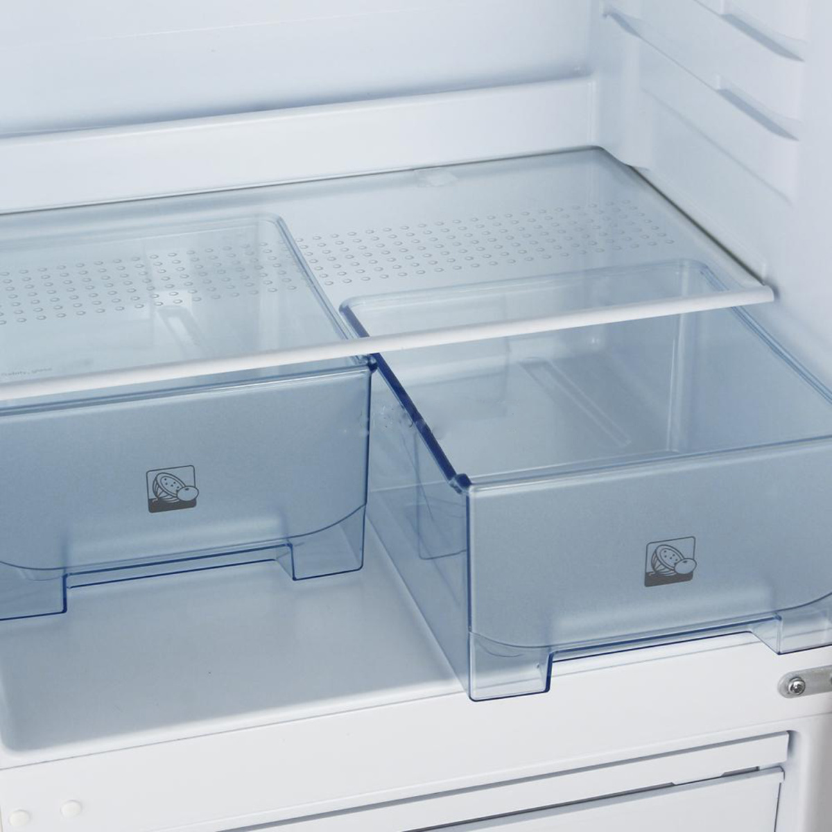 Производительность морозильной камеры, расположенной внизу холодильника POZIS RK-103 A, составляет четыре килограмма в сутки. Процесс оттаивания инея в ней происходит автоматически. Холодильное отделение оборудовано прозрачными контейнерами под овощи и фрукты и полками, изготовленными из закаленного стекла и имеющими защиту от переливания жидкостей.