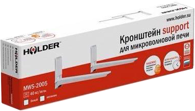 Чтобы разгрузить рабочую поверхность кухни от техники, которая стоит на столе и загромождает его, можно воспользоваться настенным кронштейном HOLDER MWS-2005, установив на него микроволновую печь. Монтаж не представляет сложности, не требует специальных знаний и инструментов и будет по силам любому. Изделие прочное, выполнено из высококачественной стали в белом цвете. Предназначено для печей СВЧ весом до 40 кг. Такое весовое ограничение позволяет устанавливать большинство моделей современных микроволновых печей. Кронштейн HOLDER MWS-2005 не имеет поворотного механизма, какой-либо регулировки. Выполнен в фиксированном варианте, что значительно повышает безопасность его использования. Необходимые для монтажа крепления включены в комплект.