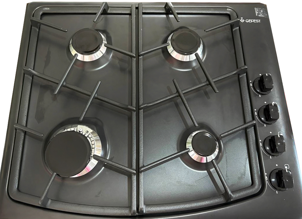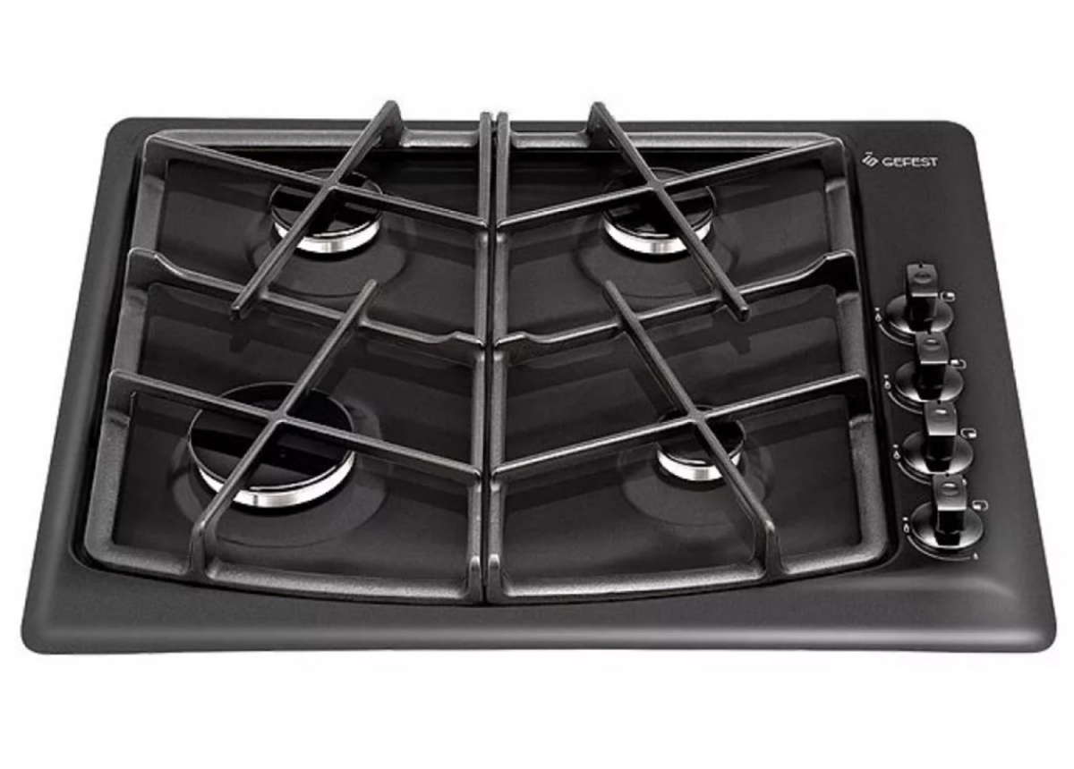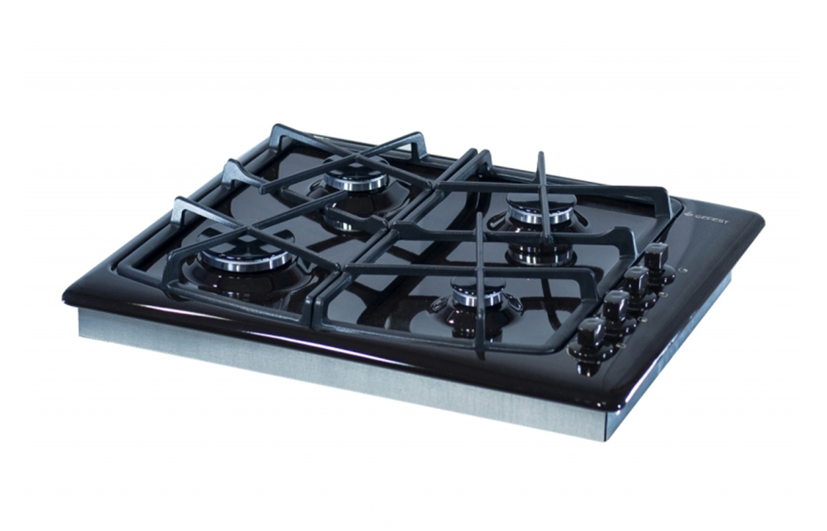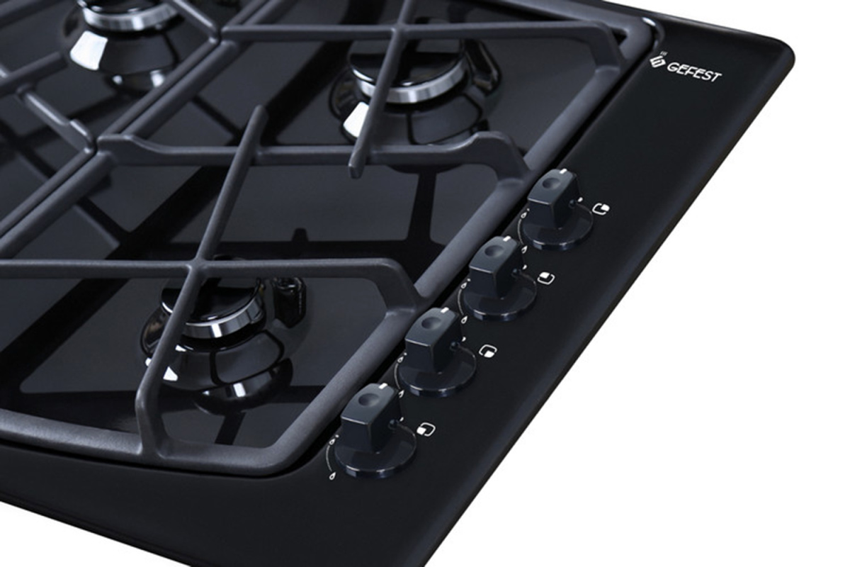 Газовая варочная панель Гефест выполнена в черном цвете и покрыта прочной эмалью, ширина 59 см. Несмотря на скромные размеры, панель укомплектована системой газ-контроля, перекрывающего подачу газа при случайном угасании пламени. А чтобы не загасить газовую горелку, предусмотрено фиксированное положение переключателя для экономного горения. Электророзжиг встроен в поворотные ручки и включается автоматически. Две средние конфорки дополнены горелками малого и большого диаметра, обеспечивают возможность использовать разную посуду для приготовления, а составные чугунные решетки выдерживают тяжесть большой кастрюли без проблем.