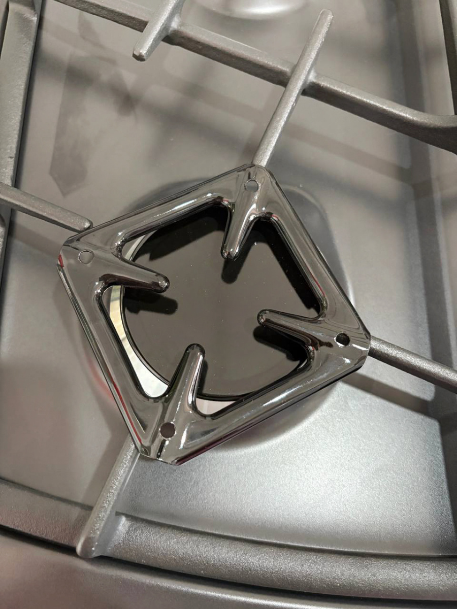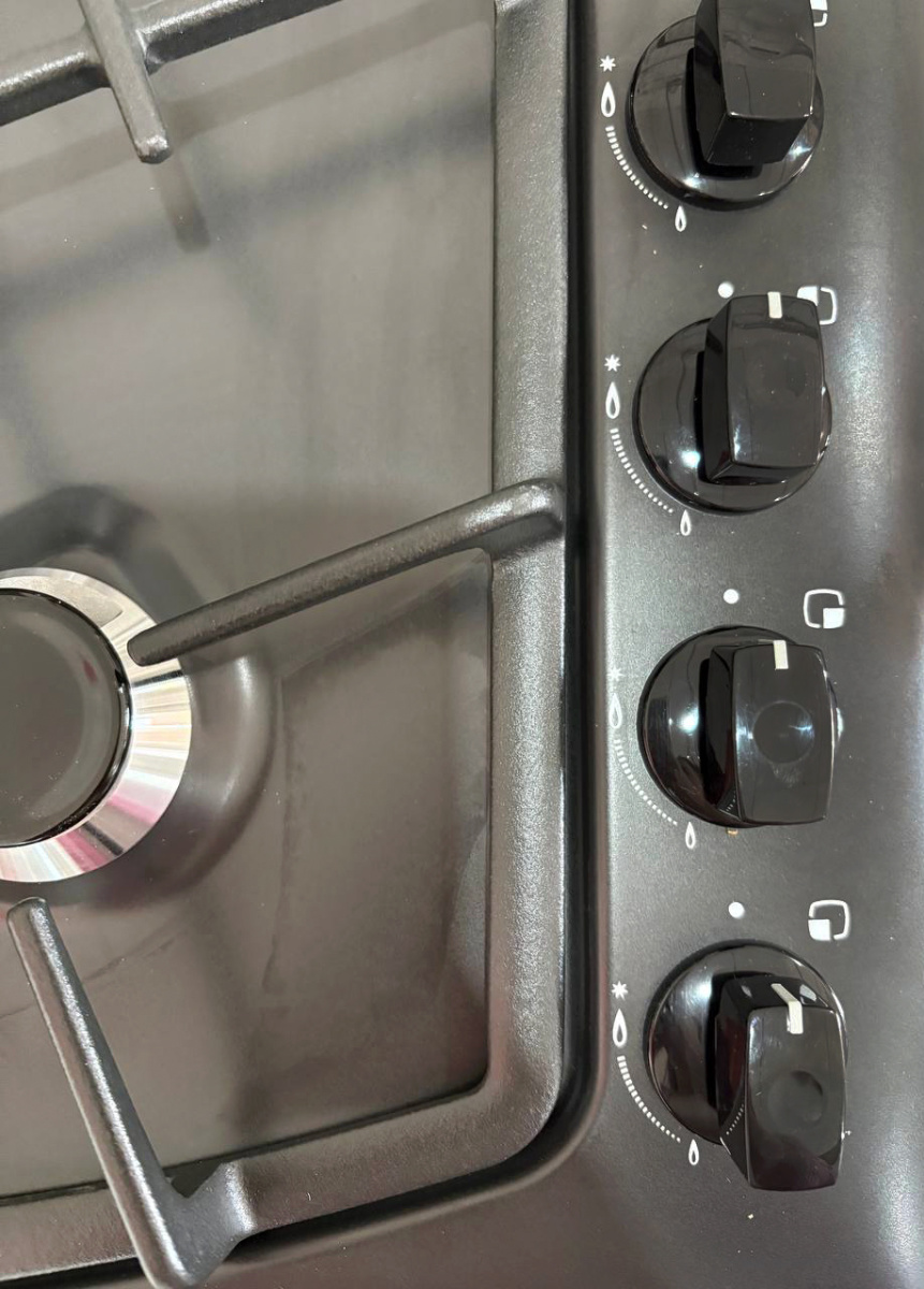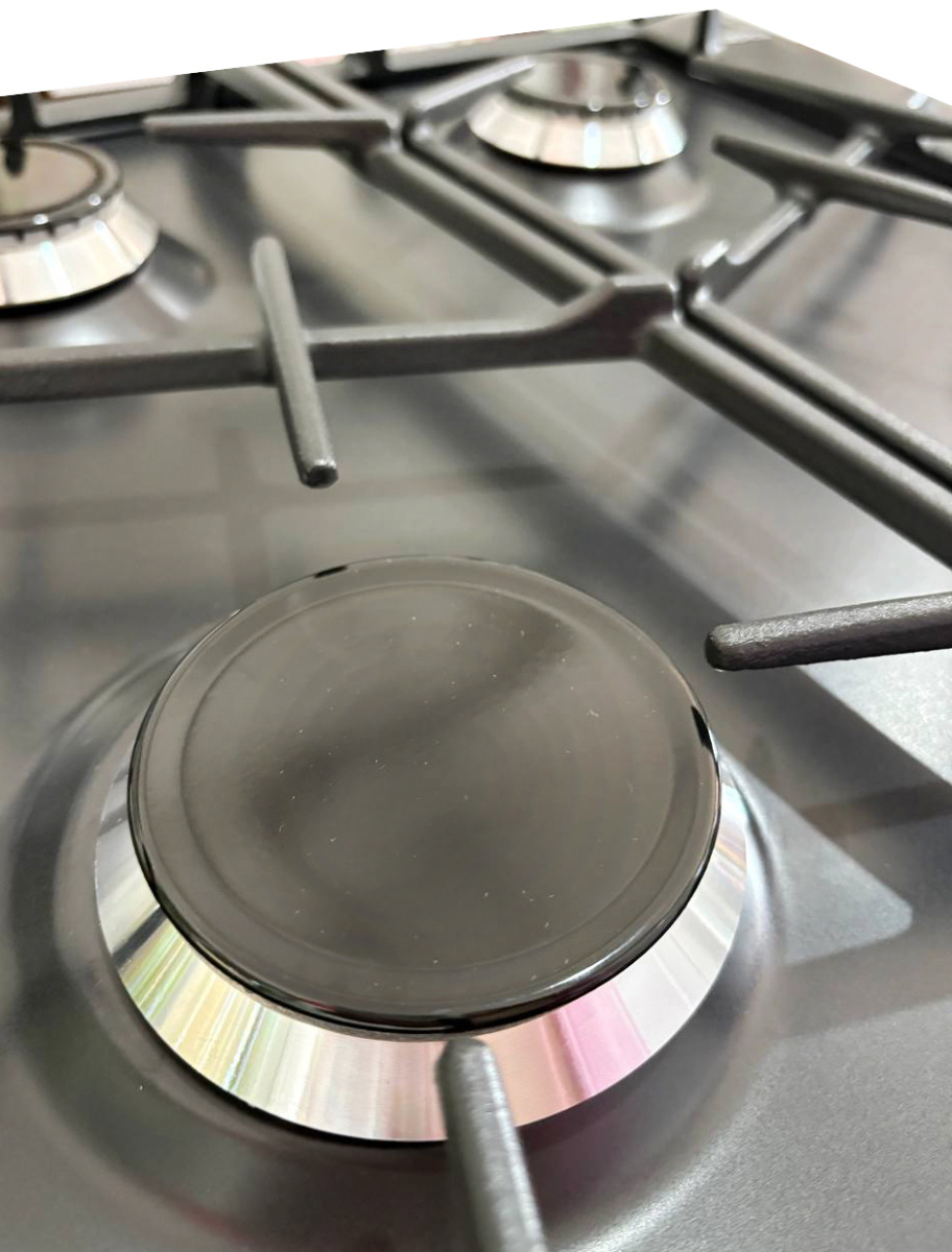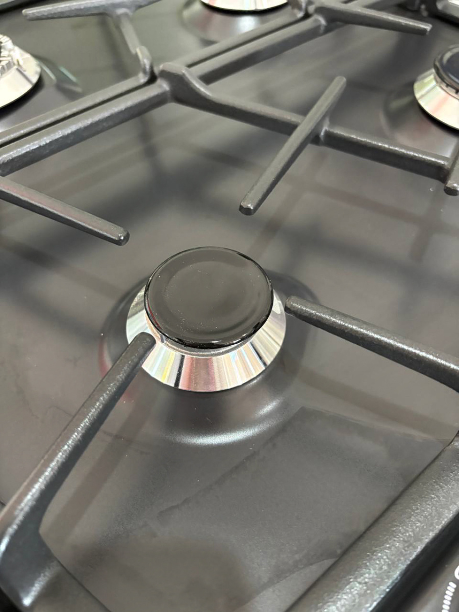 Газовая варочная панель Гефест выполнена в черном цвете и покрыта прочной эмалью, ширина 59 см. Несмотря на скромные размеры, панель укомплектована системой газ-контроля, перекрывающего подачу газа при случайном угасании пламени. А чтобы не загасить газовую горелку, предусмотрено фиксированное положение переключателя для экономного горения. Электророзжиг встроен в поворотные ручки и включается автоматически. Две средние конфорки дополнены горелками малого и большого диаметра, обеспечивают возможность использовать разную посуду для приготовления, а составные чугунные решетки выдерживают тяжесть большой кастрюли без проблем.