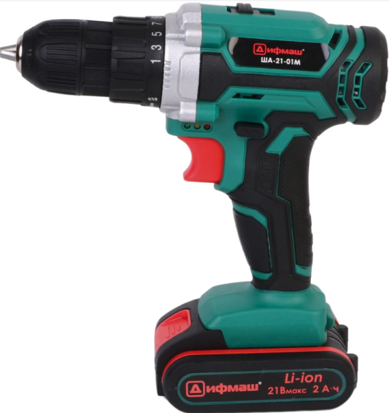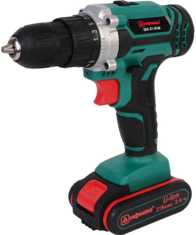 Дрель-шуруповерт аккумуляторная ША-21-01М предназначена для сверления отверстий в различных конструкционных материалах (в том числе металле, дереве, пластмассе и т.п.), и для заворачивания (отворачивания) винтов и шурупов.