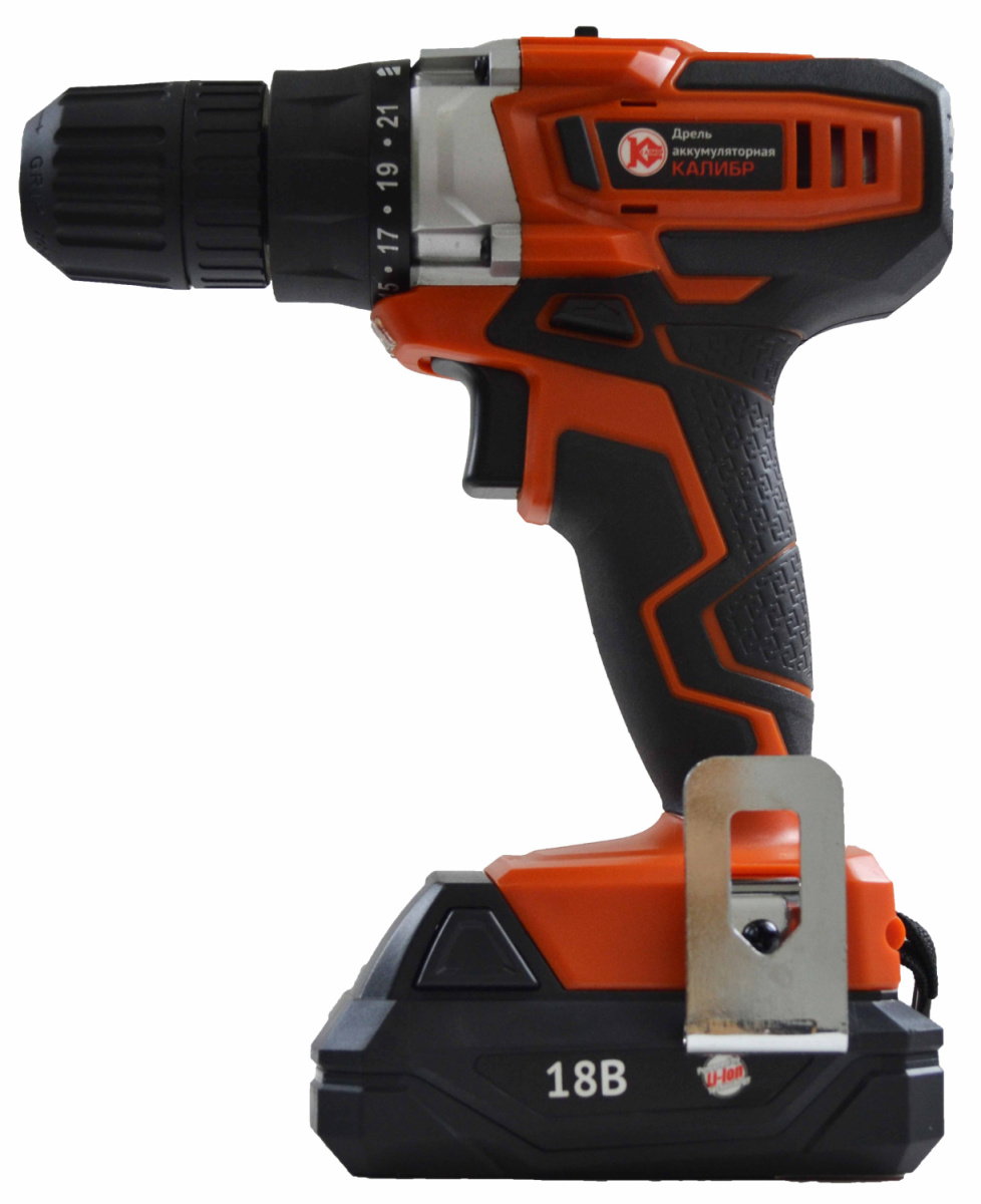 Ручная аккумуляторная дрель Калибр ДА -18-2А+ предназначена для сверления отверстий в цветных и чёрных металлах, пластмассах, дереве ДСП и откручивания/закручивания различного вида крепежа. Дрель можно использовать в качестве шуруповёрта. Инструмент предназначен для бытового применения. Коллекторный электродвигатель с двойной изоляцией обеспечивает максимальную электробезопасность при работе. При запуске двигателя автоматически включается светодиодный фонарь, обеспечивающий локальную подсветку рабочей области. Преимущество : два диапазона скорости; изменение направления вращения (реверс); ступенчатое изменение предельного момента затяжки; плавное изменение скорости вращения шпинделя.