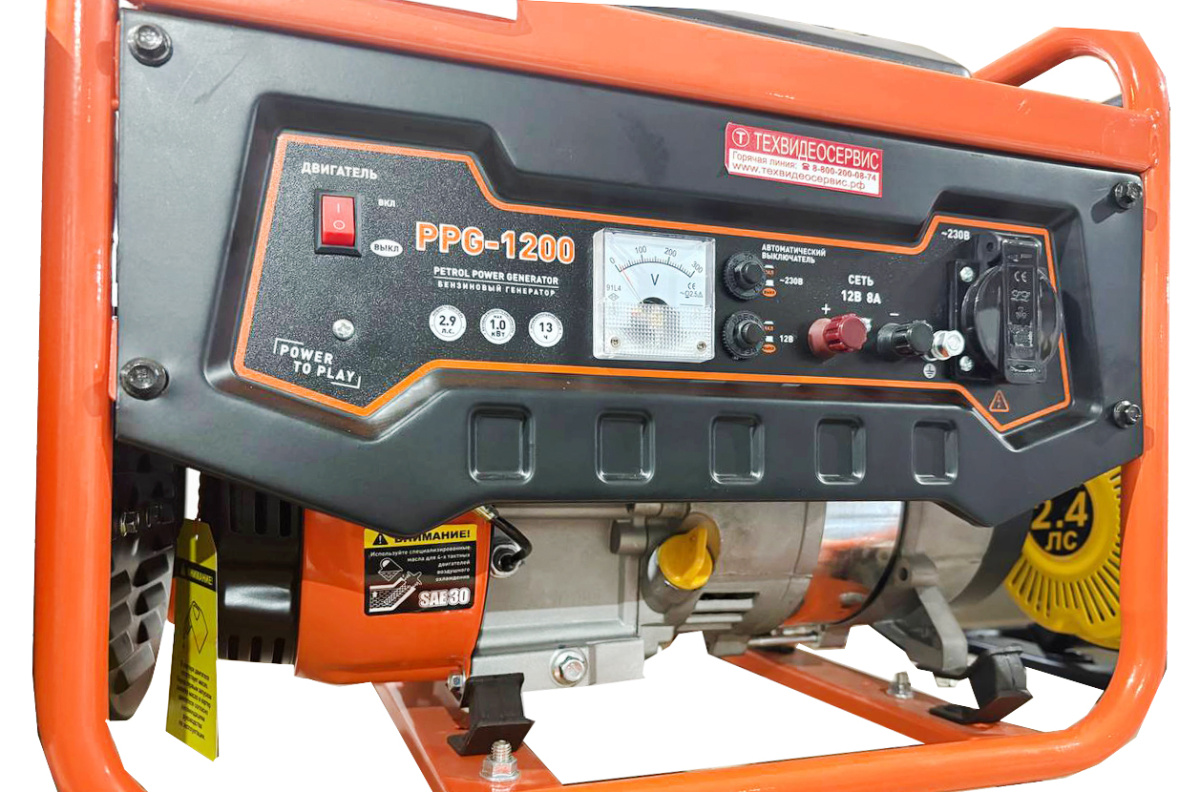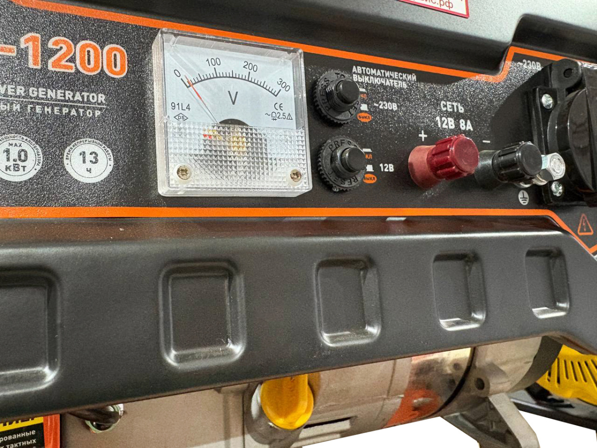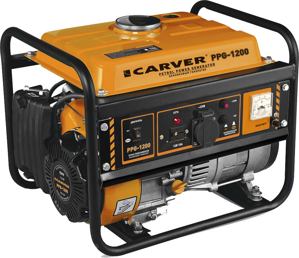 Бензиновый генератор CARVER PPG-1200 представляет собой источник электроснабжения для приборов мощностью не более 1.05 кВт. Оборудование отличается стабильностью и продолжительным временем непрерывной работы - до 13 часов. Металлическая рама и кожух позволяют надежно защитить внутренние узлы и детали от механических повреждений, а также придают жесткость конструкции. Все элементы на панели управления имеют подписи на русском языке, что максимально упрощает эксплуатацию и дает возможность использовать агрегат даже начинающему пользователю. Встроенное устройство защиты исключает перегрев двигателя при пониженном уровне масла, а специальный щуп служит для контроля над его уровнем. Обмотка генератора выполнена из алюминия.