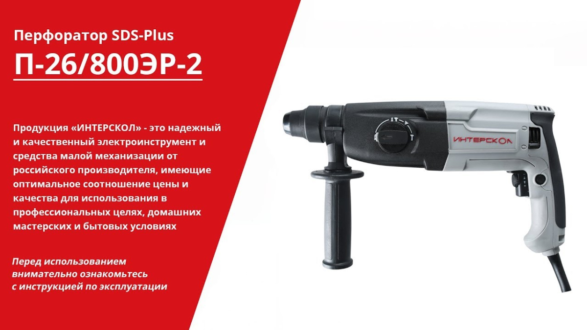 Мощный и удобный перфоратор Интерскол П-26/800ЭР-2 предназначен для сверления с ударом в кирпиче, бетоне, камне, а так же для сверления без удара в дереве, стали, синтетических и других материалах. Благодаря электронной регулировке скорости и наличию реверса может использоваться для закручивания и выкручивания шурупов. Благодаря функции долбления перфоратор прекрасно подойдет для прокладки кабель-каналов и удаления кафельной плитки.