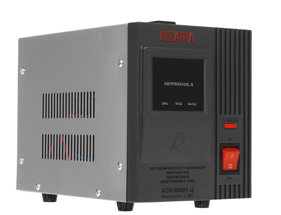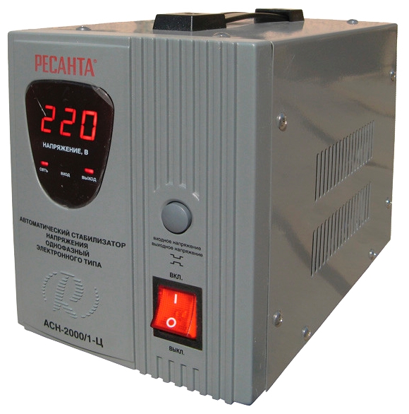 Стабилизатор напряжения Ресанта АСН 2000/1-Ц релейного типа предназначен для выравнивания входного напряжения и защиты приборов от перепадов напряжения с суммарной мощностью до 2 кВт. Работает с напряжением 220В с точностью до +/-8%. Устройство оснащено фильтрами сетевых помех, предотвращающими искажение частотной синусоиды, микропроцессорным управлением и цифровым индикатором напряжения, на котором отображаются параметры напряжения. Превышение пределов поддерживаемого входного напряжения автоматически отключает подачу питания. Прочный корпус защищает внутренние узлы аппарата от повреждений. Данный стабилизатор может обеспечивать стабильным питанием - телевизор, ресивер, DVD проигрыватель, кассовый аппарат, газовый котел.