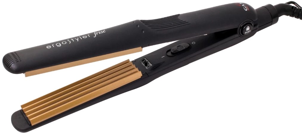 Щипцы-гофре Ga.Ma Ergostyler Frise имеют средний размер зубчиков на пластине. Прибор разработан специально для создания объемных укладок, например, в стиле "афро". Ширина рабочей поверхности 25 мм позволяет как гофрировать пряди по всей длине, так и создать только прикорневой объем.