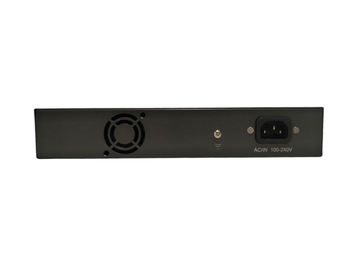 На лицевой стороне изделия присутствует переключатель режима работы. В данном режиме поддерживается передача сигналов и PoE- питания на расстояние до 250 метров. Стабильность работы в данном режиме не гарантируется производителем, поскольку зависит от множества факторов в т.ч. качество используемых кабелей.Обратная пропускная способность: 20 Гбит/с. Размер: 250 * 150 * 44 мм