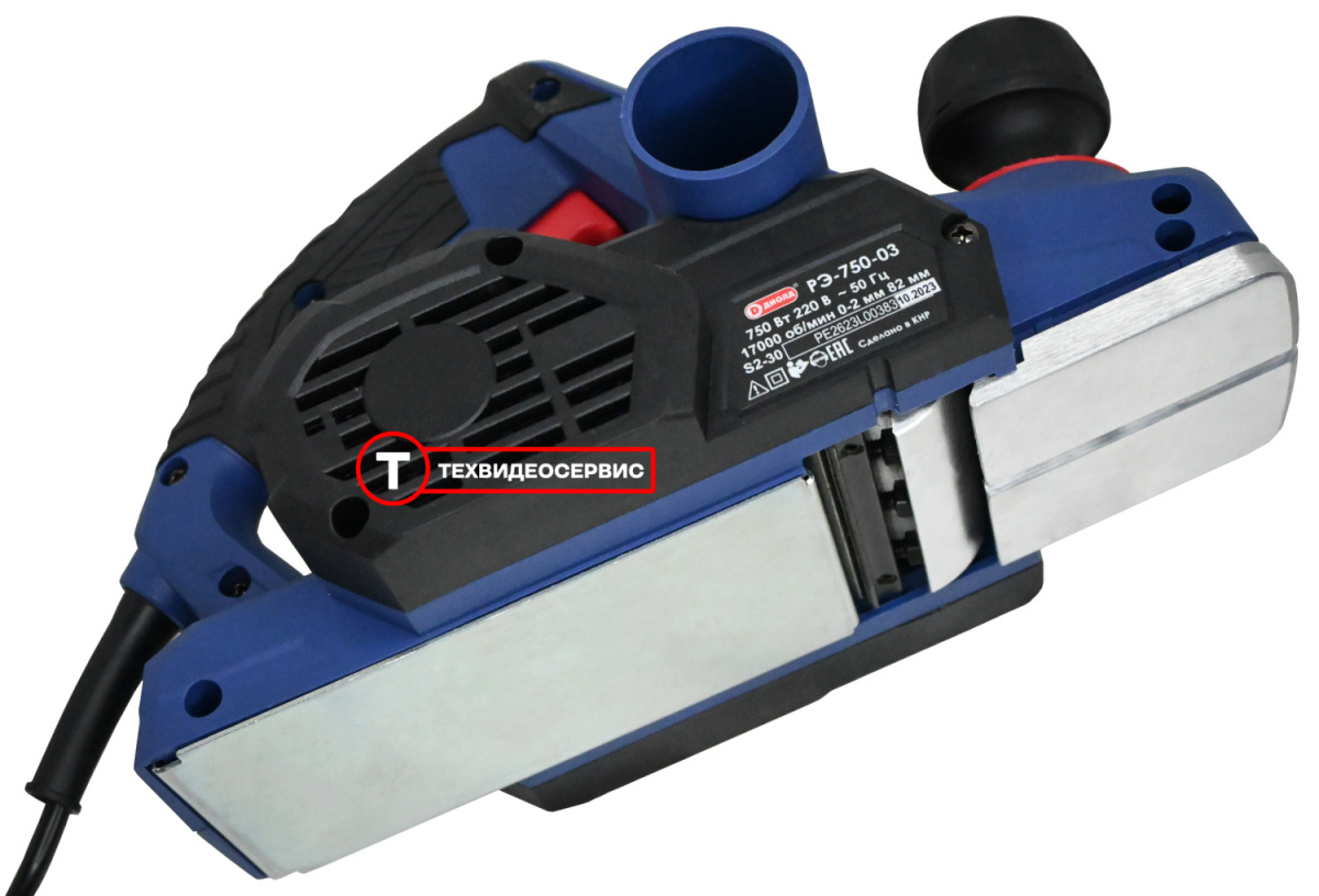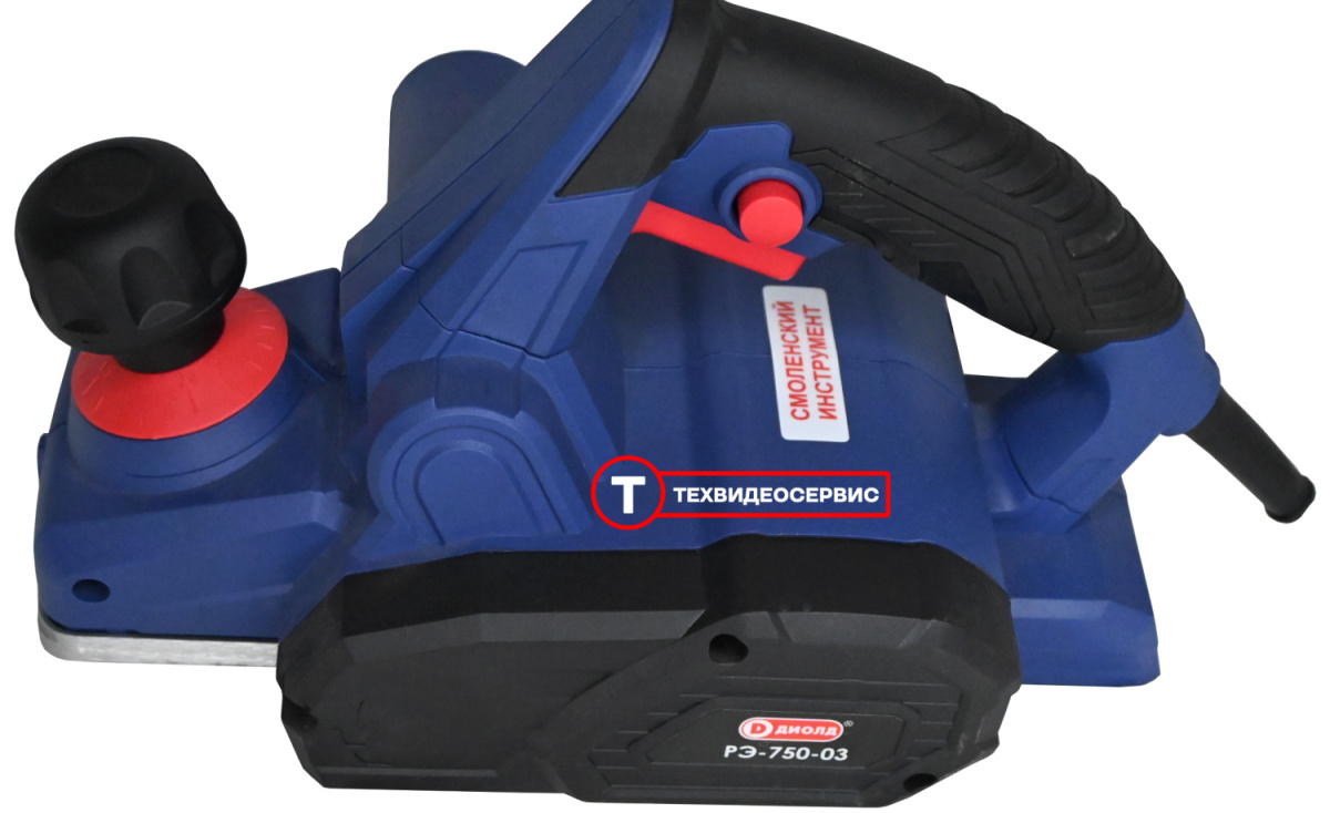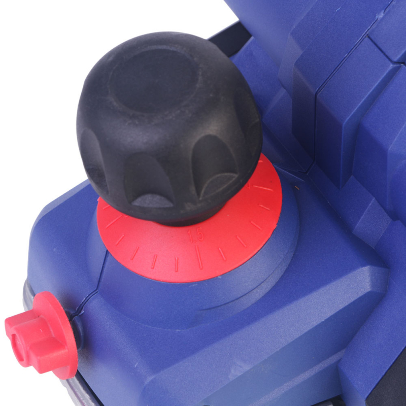 Электрорубанок Диолд РЭ-750-03 легко удерживается прорезиненной ручкой, позволяя аккуратно строгать древесину. V-образная канавка на подошве поможет снимать фаску (строгать кромку). Также вы можете проводить выборку четверти до 1 см и настраивать глубину строгания до 2 мм путем поворота опорной ручки.