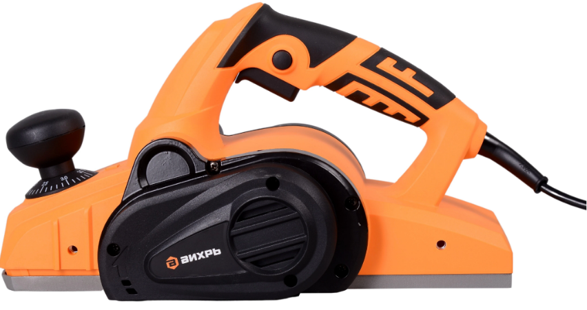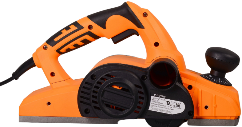 Электрорубанок Вихрь Р-110/1100 с мощностью электропривода на уровне 1300 Вт относится к числу бытовых моделей и дает возможность строгать древесные заготовки на глубину до 3,5 мм. Электроинструмент со скоростью вращения ножей 15000 об/мин обрабатывает за один проход полосу шириной 110 мм. Передняя рукоять применяется как для контроля инструмента во время его движения по заготовке, так и для выбора глубины сверления.