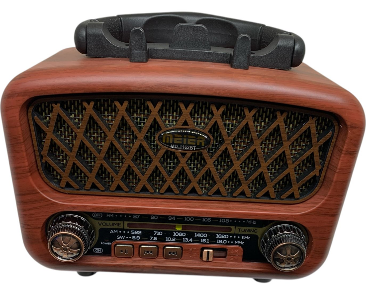 Радиоприемник Meier M-1162BT выполненный в ретро-дизайне идеально подходит для туристов, рыбаков, путешественников, любителей отдыха на природе.
