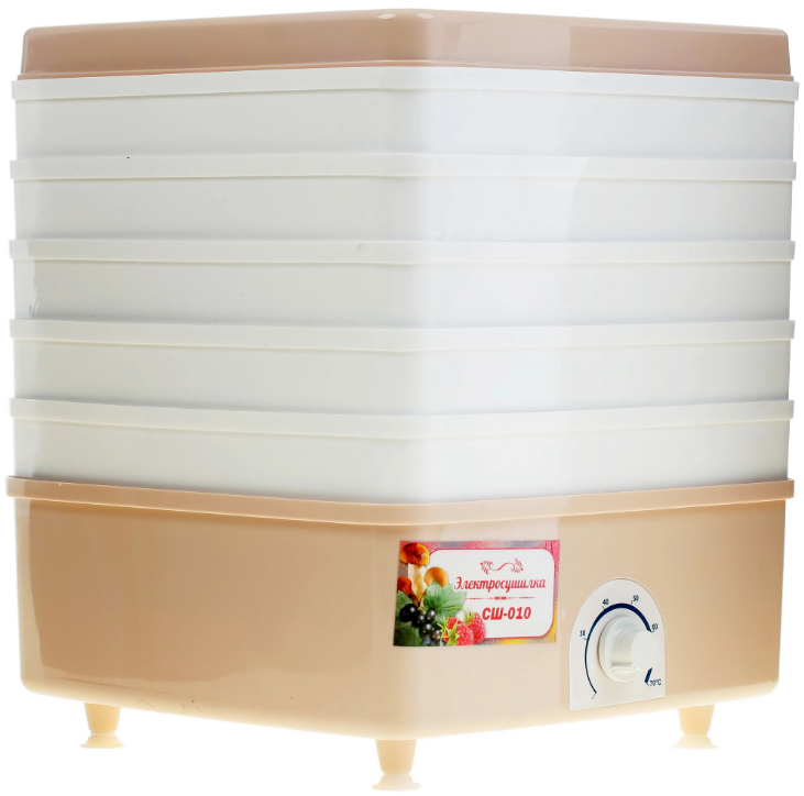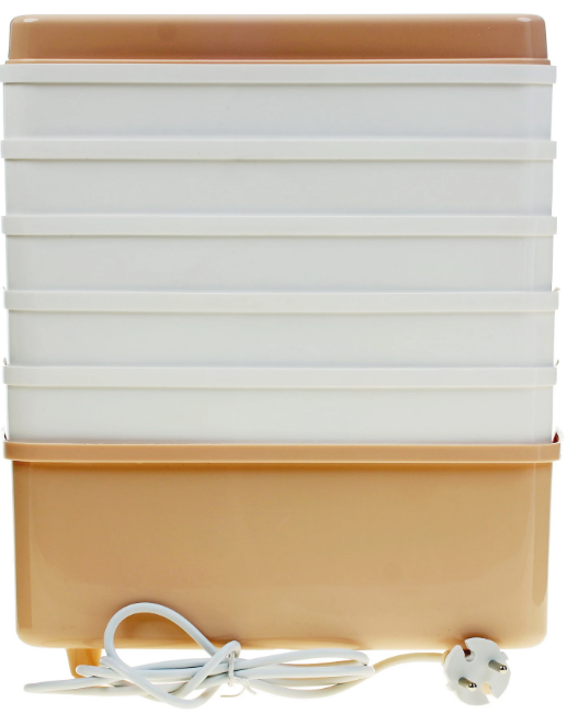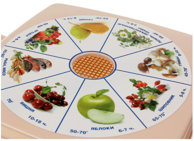 Каждый из пяти поддонов устройства рассчитан на один килограмм продуктов, что весьма удобно при необходимости заготовить большое количество фруктов, овощей и грибов. Благодаря встроенному регулятору вы сможете самостоятельно устанавливать желаемую температуру сушки, которая варьируется от 30 до 70 градусов. А встроенная защита от перегрева не позволит сушилке сломаться даже при непрерывной и интенсивной работе в разгар сезон