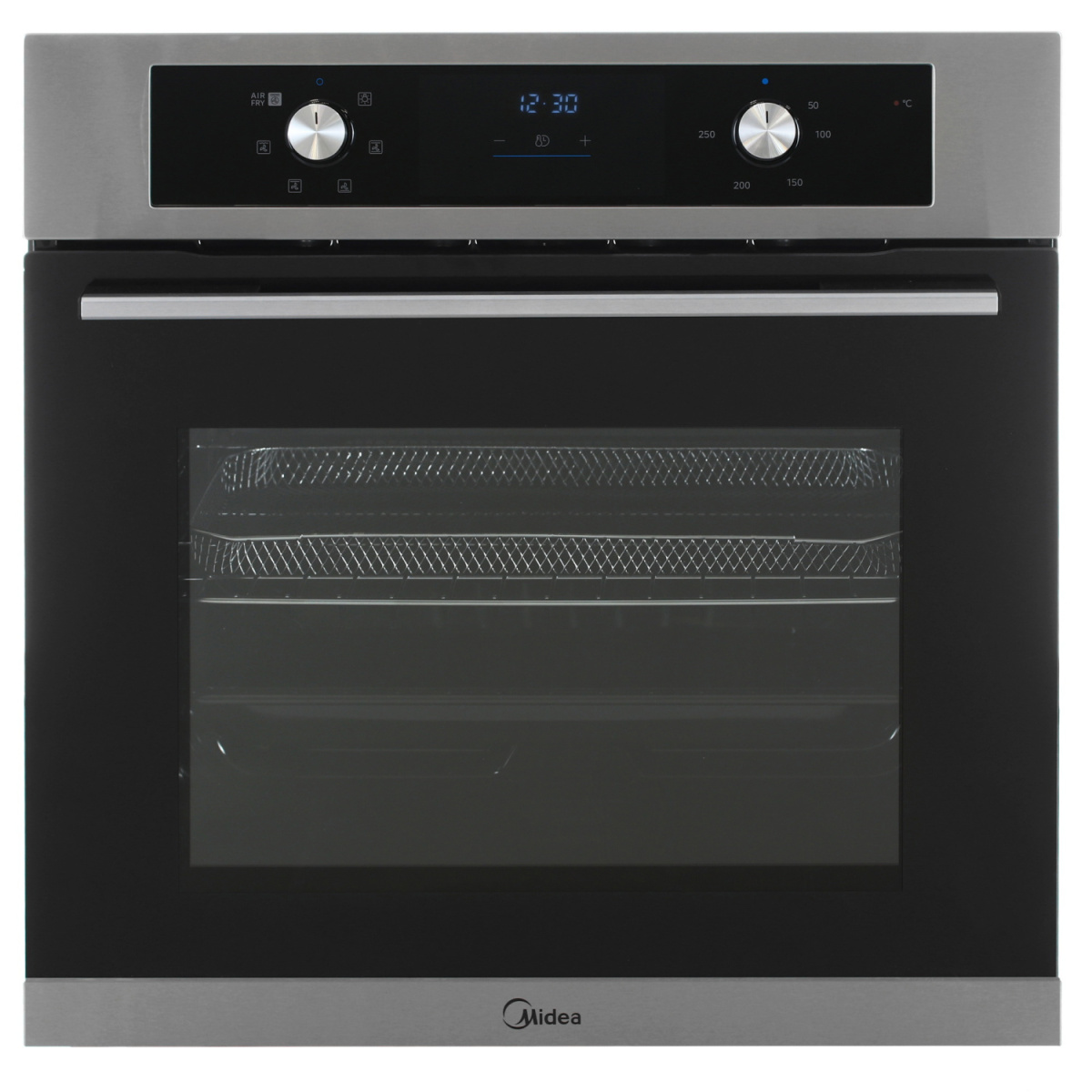 Электрический духовой шкаф Midea MO47003GX оснащен дверцей с двойным стеклом. Внутреннее стекло можно вынуть без инструментов для очистки от следов жира. В камере есть вентилятор охлаждения. Он не допускает перегрев корпуса и панели управления при длительной работе при максимальной температуре. С помощью таймера можно установить точное время приготовления. После завершения цикла духовка автоматически отключится без контроля со стороны человека.
